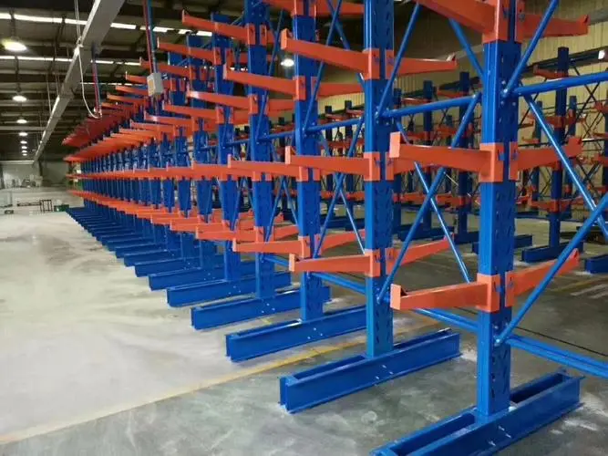 悬臂式货架:悬臂式货架是货架中重要的一类,它由悬臂和纵梁相连而成,在垂直立柱的两侧伸出悬臂。