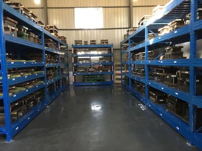 模具货架:由立柱、横梁、滑轮、轨道、抽屉层板、天车、固定螺杆组成。